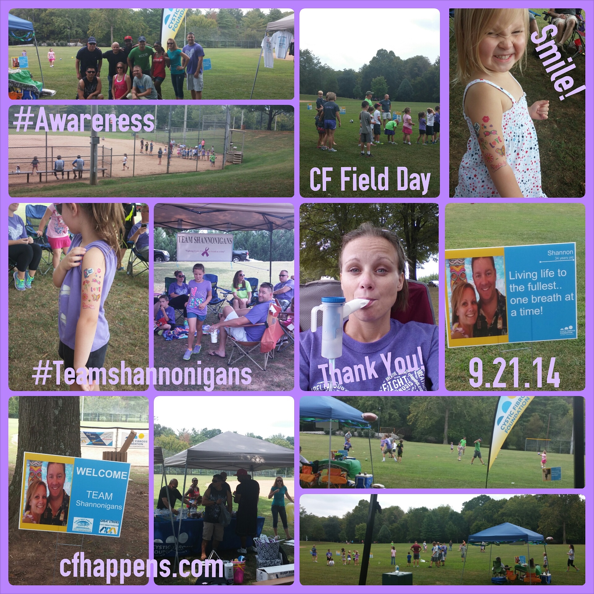 Sunday we had my local CF walk. Well I use the word “walk” loosely because it was a field day and it was FABULOUS!!! This event is the smaller of the two in my area, there are only about 7 teams so it is very quaint and fun. They did many field day activities for the kids like football toss, run the bases, dodge ball, sack race and more! The kids all had a blast and were good and worn out. The adults got to hang out under our canopies and watch the kids enjoy themselves. We did do a lap around the trail at the park to say we did an actual walk…hahaha. I hope our walks continue in this direction because this was so much more fun than just a walk and a mass of people walking which means craziness. I also had people post pictures to Facebook of themselves in their Shannonigans gear on Sunday so that they could be a part of the day from a far. I will leave you with a few pictures from our day.