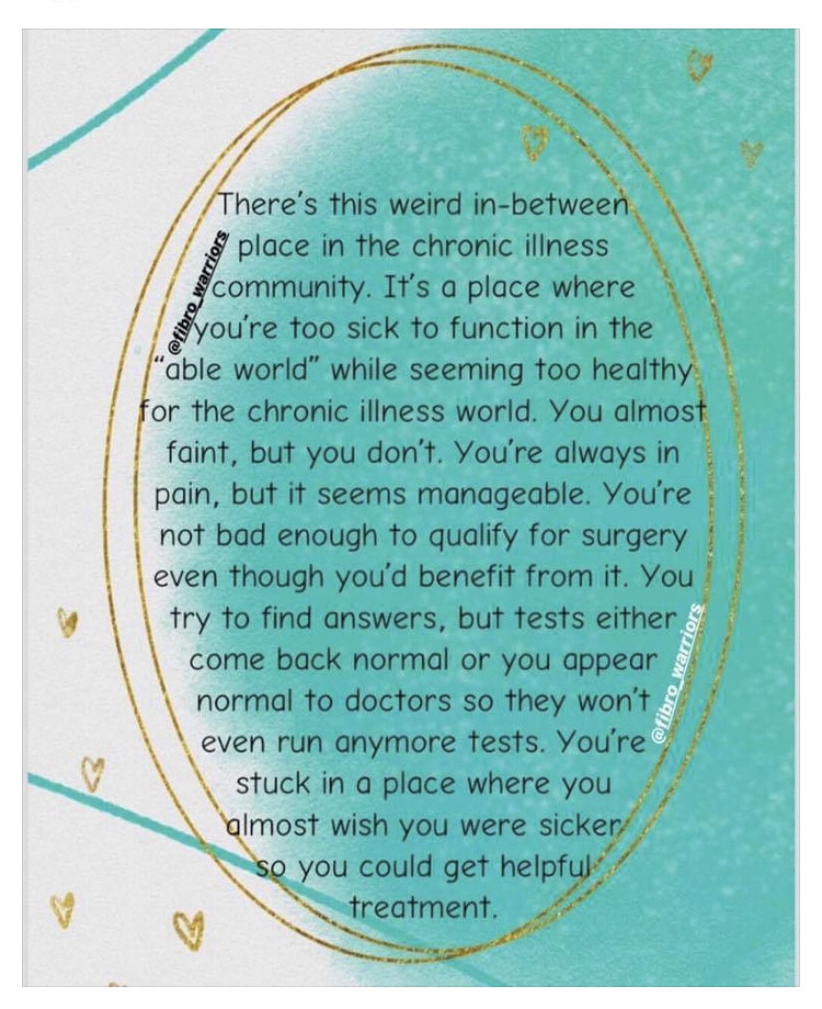 Being in limbo sucks. I’m not sick enough for transplant just yet but I’m sick enough to be limited in what I can do. It’s like do I wish to get sicker so I can just get a transplant and be done with it, as if it’s that easy, or what. No I don’t want to get sicker but it’s bound to happen. It’s the nature of having cf. It’s a mind trip to say the least.
